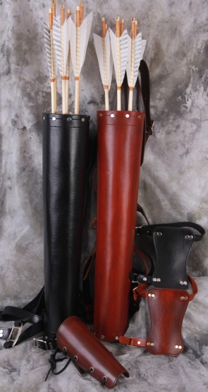 Quivers A practical item for the archer. Heavy Weight construction. Available to be worn over the shoulder or as a hip/belt quiver.